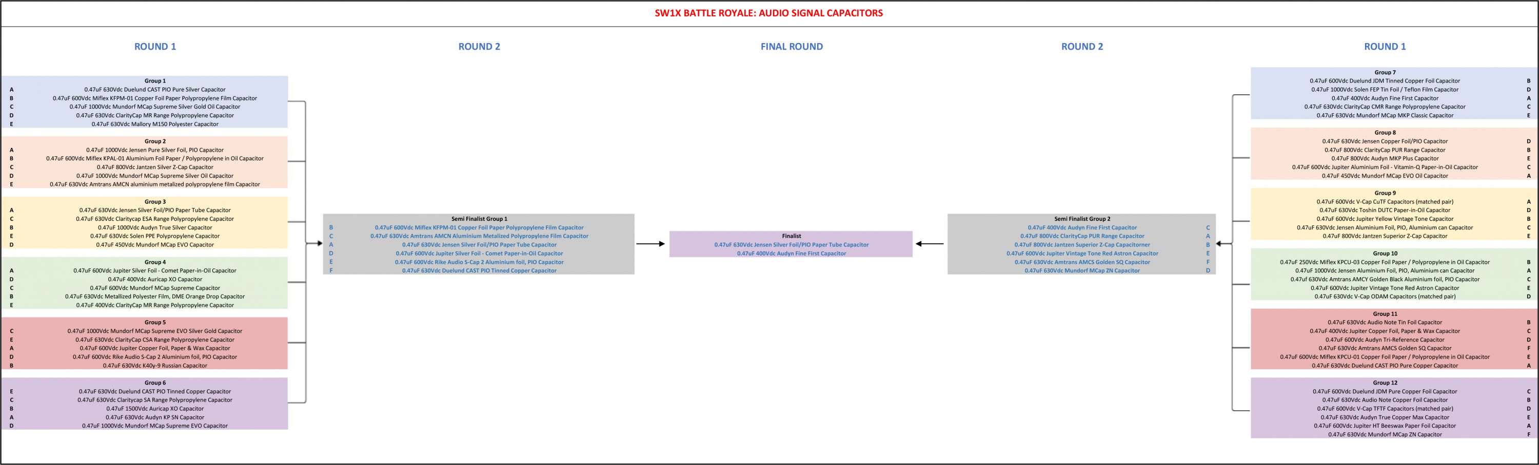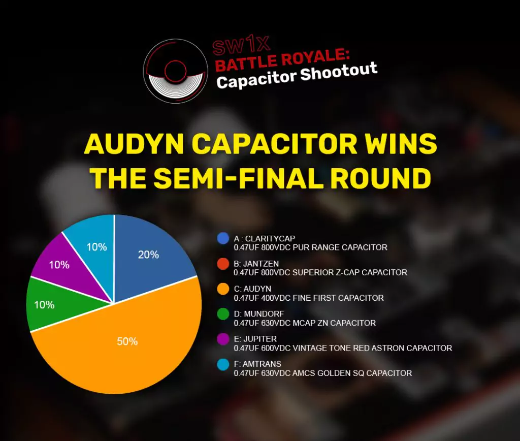 Can this get any better? Yes! The shootout is active battle royale format where capacitors are competing against one another. It is you, who will decide the winner in each round and win our prized, SW1X MAGNUM X REFERENCE LITZ COPPER CABLE!